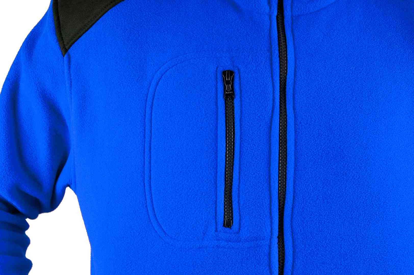 Bluza wykonana z POLARU. Polar z wykończeniem antypilingowym. Polar jest gruby i posiada bardzo dobre właściwości cieplne, przyjemny w dotyku, 2 kieszenie zasuwane zamkami błyskawicznymi oraz dodatkowa kieszeń na piersi z zamkiem. W dolnej częśći możliwa regulacja na gume ze stoperami. Bluza na karku, barkach i łokciach posiada wzmocnienia. Możliwe zastosowanie dowolnej kolorystyki i łączenia kolorów w produkcje: