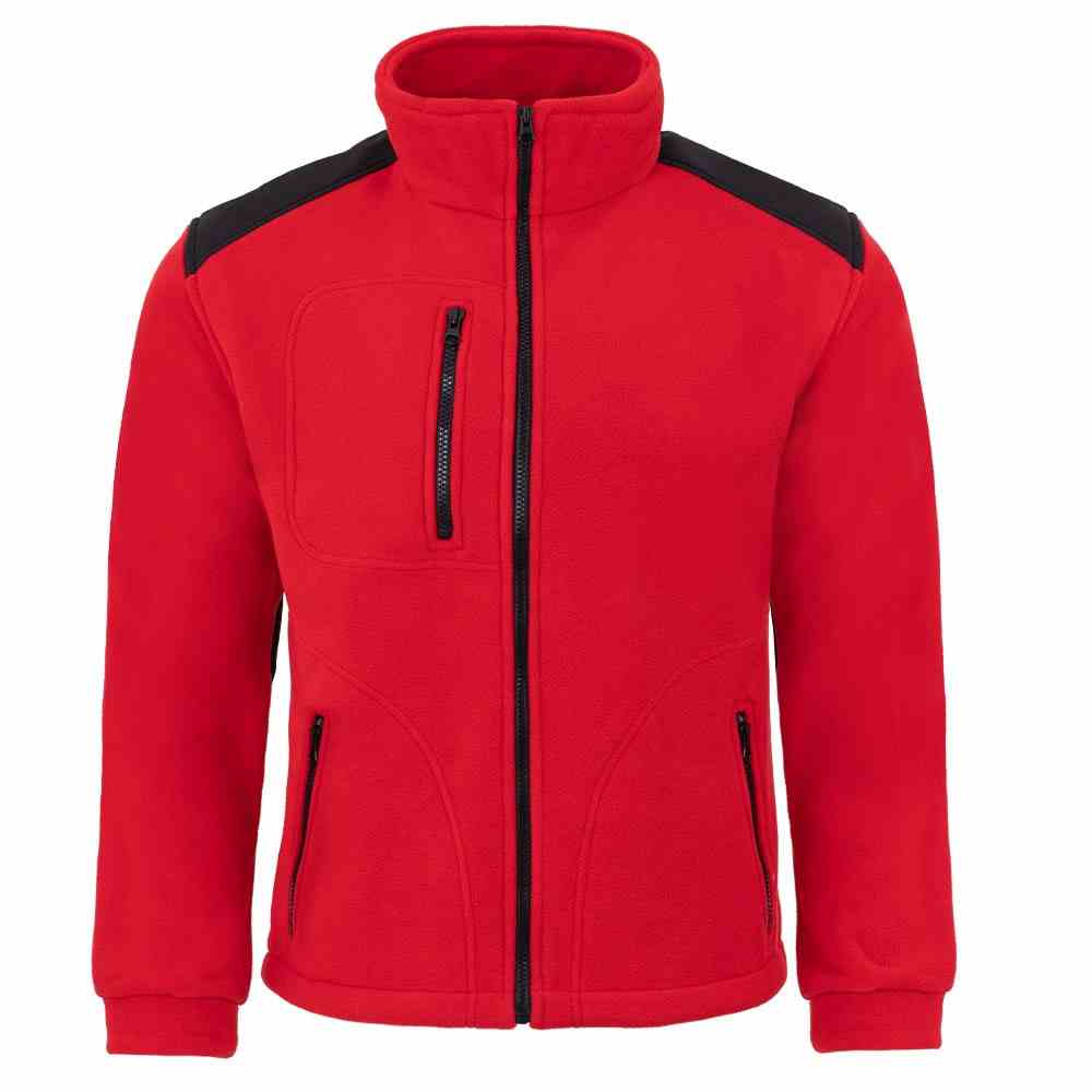 Bluza wykonana z POLARU. Polar z wykończeniem antypilingowym. Polar jest gruby i posiada bardzo dobre właściwości cieplne, przyjemny w dotyku, 2 kieszenie zasuwane zamkami błyskawicznymi oraz dodatkowa kieszeń na piersi z zamkiem. W dolnej częśći możliwa regulacja na gume ze stoperami. Bluza na karku, barkach i łokciach posiada wzmocnienia. Możliwe zastosowanie dowolnej kolorystyki i łączenia kolorów w produkcje: