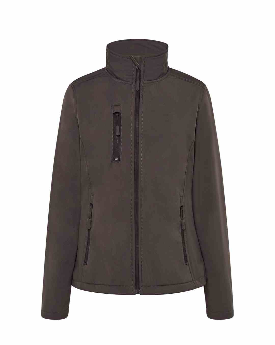 Kurtka damska typu softshell. Długi zamek. Kieszenie boczne. Waterproof 3000mm, breathability 3000mvp, windstop. Ext: 95% poliester / 5% elastan; Int:100% poliester